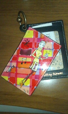 2枚の定期入れがリングでひとつにまとめられてる、みたいなやつで、当然、裏面にもイラストがついています。