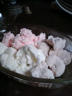 ココア味とプレーンです。ピンクのは食紅。 次はもっとかわいく作るぞぅ